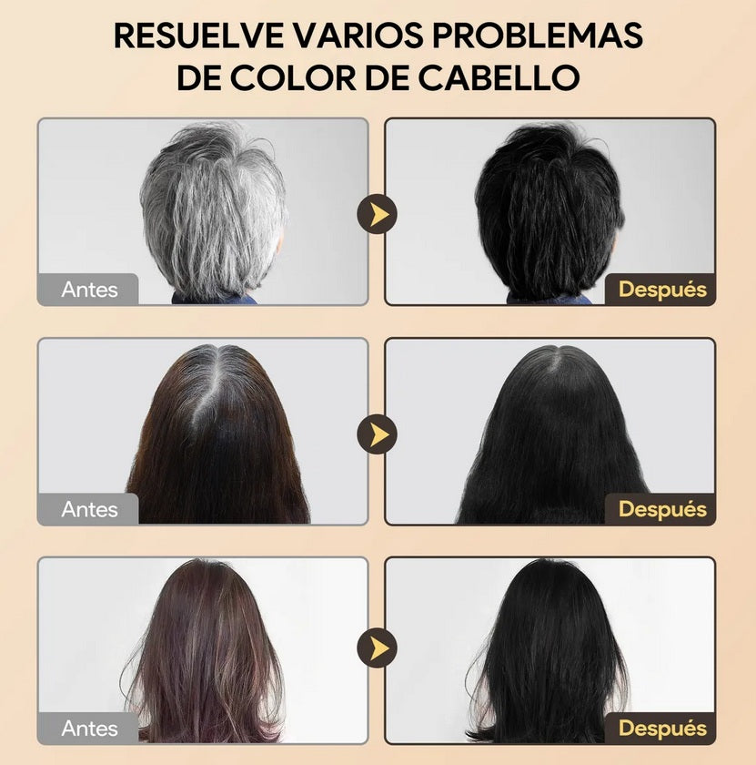 Champú/tinte unisex 💇♀️💇♂️ para cabello y barba 👩🦰🧔, disponible en tonos burdeo, marrón, negro y café 🎨. Con fórmula vegetal suave 🌿 y aceite de argán 💧, es fácil de aplicar como un champú común 🛁. Tiñe en solo 5-15 minutos ⏱️, dejando un color natural ✨ sin tonos artificiales. Ideal para usar en casa 🏠, incluye guantes 🧤 y ofrece resultados duraderos hasta por 6 meses 📅.